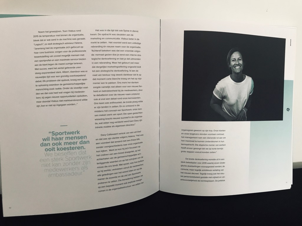 Mijn hart maakte dan ook een sprongetje toen Davy Callewaert reageerde op mijn oproep op LinkedIn. Davy is een gepassioneerd ondernemer die sinds een aantal jaar aan het hoofd staat van Sportwerk Vlaanderen, oneerbiedig uitgedrukt hét uitzendkantoor van sportpersoneel dat voor een golf aan professionalisering in het Vlaamse sportlandschap wil zorgen. Sportwerk Vlaanderen bestaat dit jaar 35 jaar en dus was dat de ideale gelegenheid om haar levensloop in kaart te brengen.